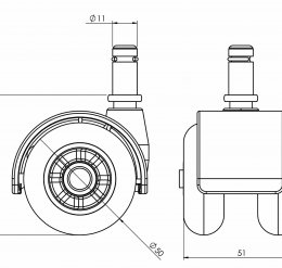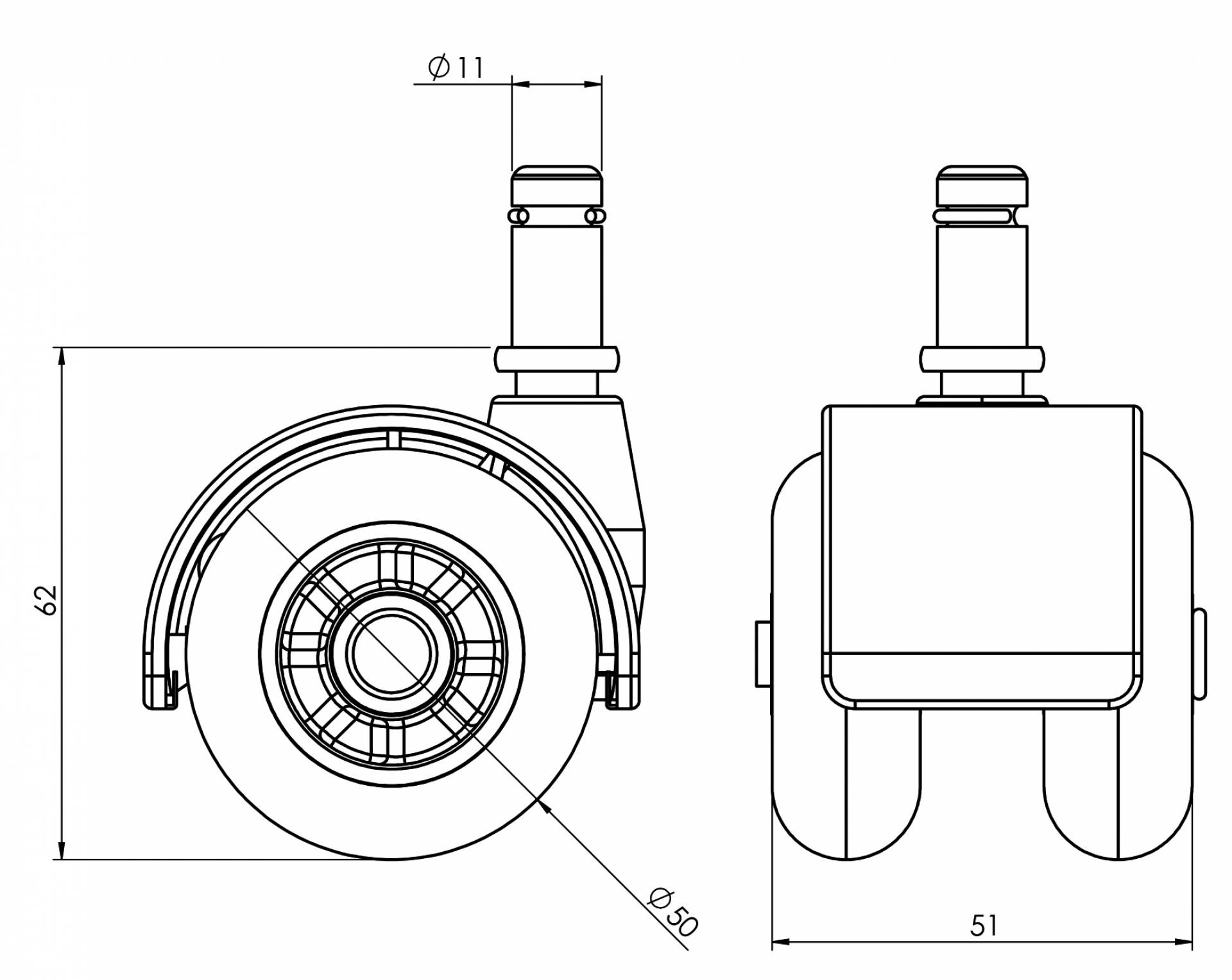 Diâmetro: 50mmCapacidade de Carga: 45 KgAltura Total: 63mm