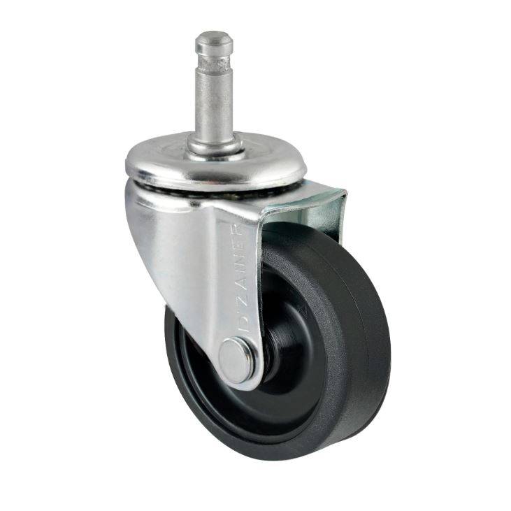 Rodízio zamac com haste lisa de 1/4" e bucha de 1/2" Roda preta e cromada Rodinha sofisticada